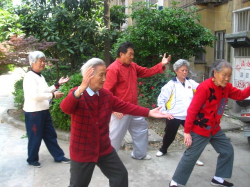 出生于1922年的陈如英,家住南通市港闸区西洋桥新村4幢206室。童工出身的陈如英10岁就到大生纱厂做工,人没机器高,站在小矮凳上接纱头,一直做到五十岁退休。在旧社会,纺织工人最苦,起早摸黑,风雪中来雨水中去,吃不饱,穿不暖,从那时起她落下病根:关节炎、腰椎盘突出、胃病……常年不离药,发起病来一年要住几次医院。退休后,一次偶然的机会,她在小区看见比她大二岁的原厂工会主席陈兰英和几个老姐妹们在练扇子舞和太极拳,原来也是“药罐子”的陈兰英,坚持锻炼了两年后,不吃药不打针不买保健品就“百病消散”了。这对陈如英来说启发很大,她也跟在老姐妹们后面学起太极拳、扇子舞,后来又拜比她小四岁的武术协会的老陈为师练太极剑,并经常参加市里的武术培训和表演。由于陈如英坚持不懈的锻炼,从简易太极拳练到24节,再练到42节,她都熟练自如,接着她又学习太极剑。春去冬来,一练就是四十个年头,原来在陈如英身上的各种疾病都消失了,后来她没有再住过院,就是有点伤风感冒,喝喝白开水、打打拳、舞舞剑也就挺过去了。她只要市里、区里、镇上、居委会有活动就主动“请缨”上台参加表演,陈如英告诉笔者:像今天这样的活动她四十年来已经参加了几百次了。