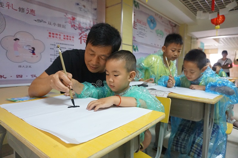 首先,同学们在小老师的带领下朗读复习了荀子的《劝学》篇,并且诵读了一部分《三字经》,声音稚嫩却也不失智慧,咬字清晰,摇头晃脑,颇有古时学堂的一番风貌;虽是呀呀学语,亦有学生之气。“人之初,性本善”-孩子是这个世界上最纯洁的生物,或许安静或许调皮或许淘气,但他们的善良却无从掩盖,熠熠生辉。