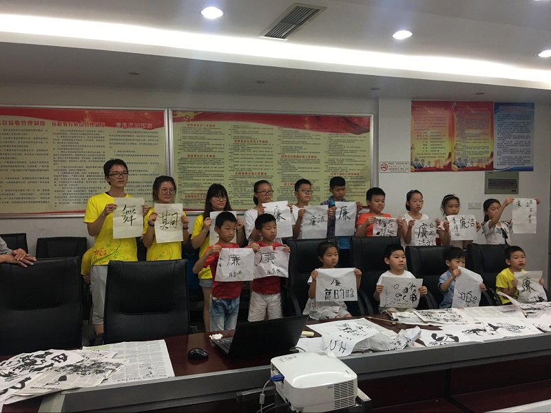 清风妙笔书“廉”,社区邀请南通大学杏林学院“星期舞”社团的大学生们为青少年授课写书法,从最基本的横竖点捺撇开始教起,教写“廉”字,并从书写中衍生出廉洁的知识,讲解关于“廉”字的起源、演变过程和含义等知识内容。孩子们一笔一划认真临摹,反复练习,把一个个“廉”字都写得有模有样,浓浓的“廉”味如清风般萦绕在每个人身边。用毛笔书写“廉”字,不但培养了孩子们的耐心、愉悦身心陶冶情操,也让大家对“廉”文化有了更深的了解和认识,在将中华传统文化薪火相传的同时,引导孩子们从小树立起良好的清正廉洁意识。(闸东社区刘志凌)