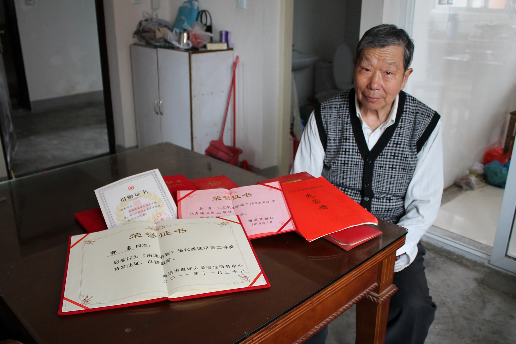 郭勇还热心向新闻媒体“报料”, 报社电视台经常能接到他的报料电话,为他们提供了不少新闻线索。他知道新闻稿件因时效性要快写快发,每次采访后都是不顾休息及时写成报道,乘公交车送到报社去,虽说一路辛苦,但他乐此不疲,用自己的不辍笔耕为社会提供了丰富的精神食粮,近几年多次被南通日报、江海晚报评为优秀通讯员。